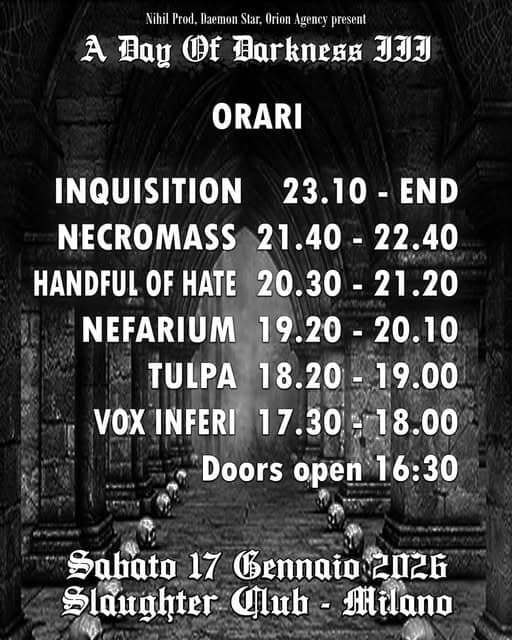 Alla terza edizione del A Day Of Darkness, le leggende d’oltreoceano INQUISITION saranno gli headliner della serata, assieme agli storici NECROMASS che eseguiranno un set speciale old…